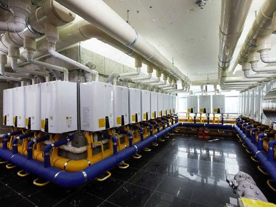 Когда монтаж котельной завершён, проводится гидравлическое испытание системы на герметичность и работоспособность.